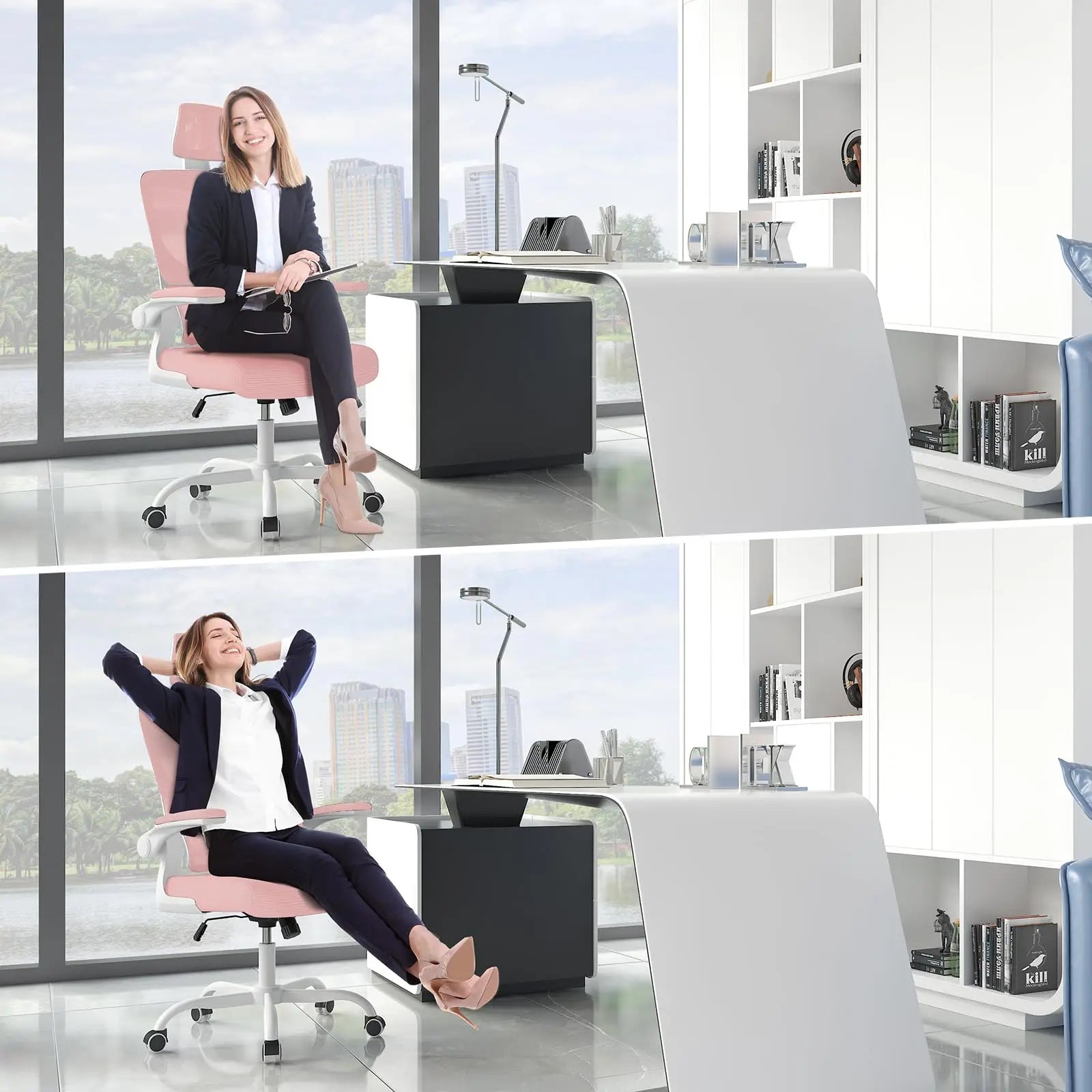 --Segmented Backrest: The 3-stage backrest fits the curve of your neck, back and waist. Dynamic lumbar support provides support separate from the backrest. With built-in spring for elastic adaption, it automatically adjusts backwards and forwards according to the pressure it is subjected to, making you feel more comfortable in any sitting position.