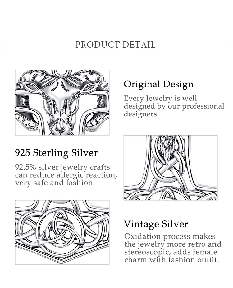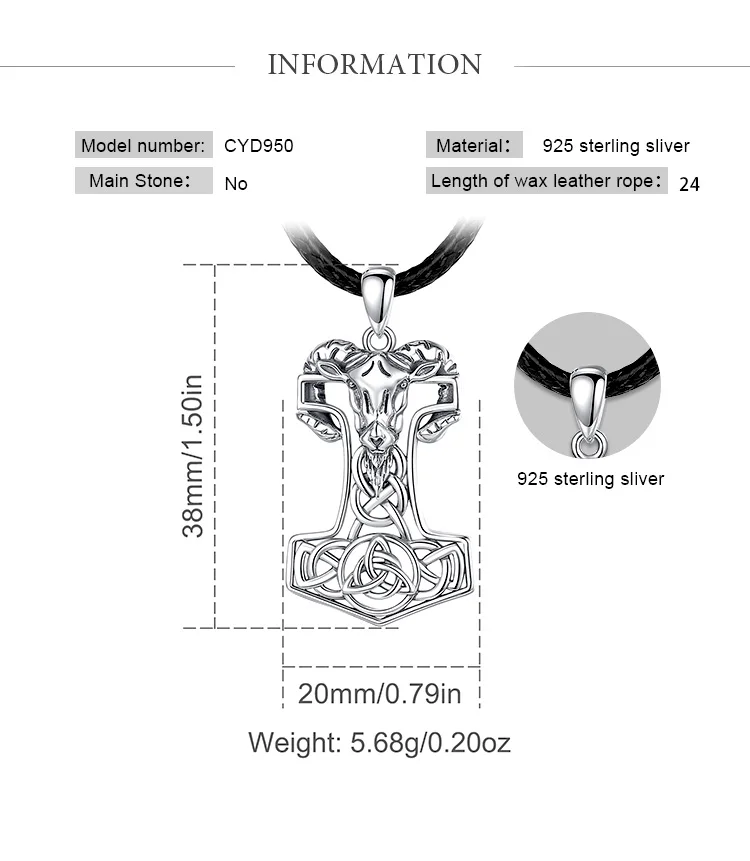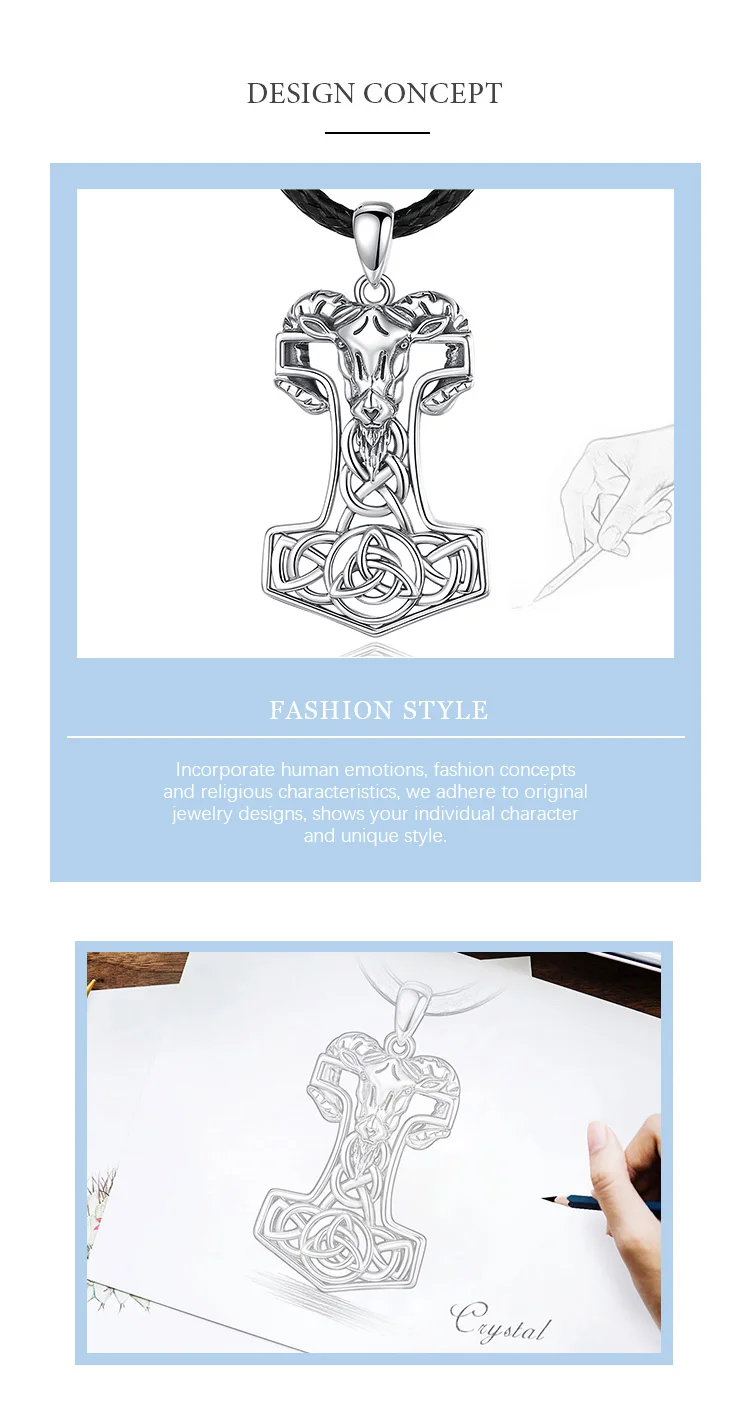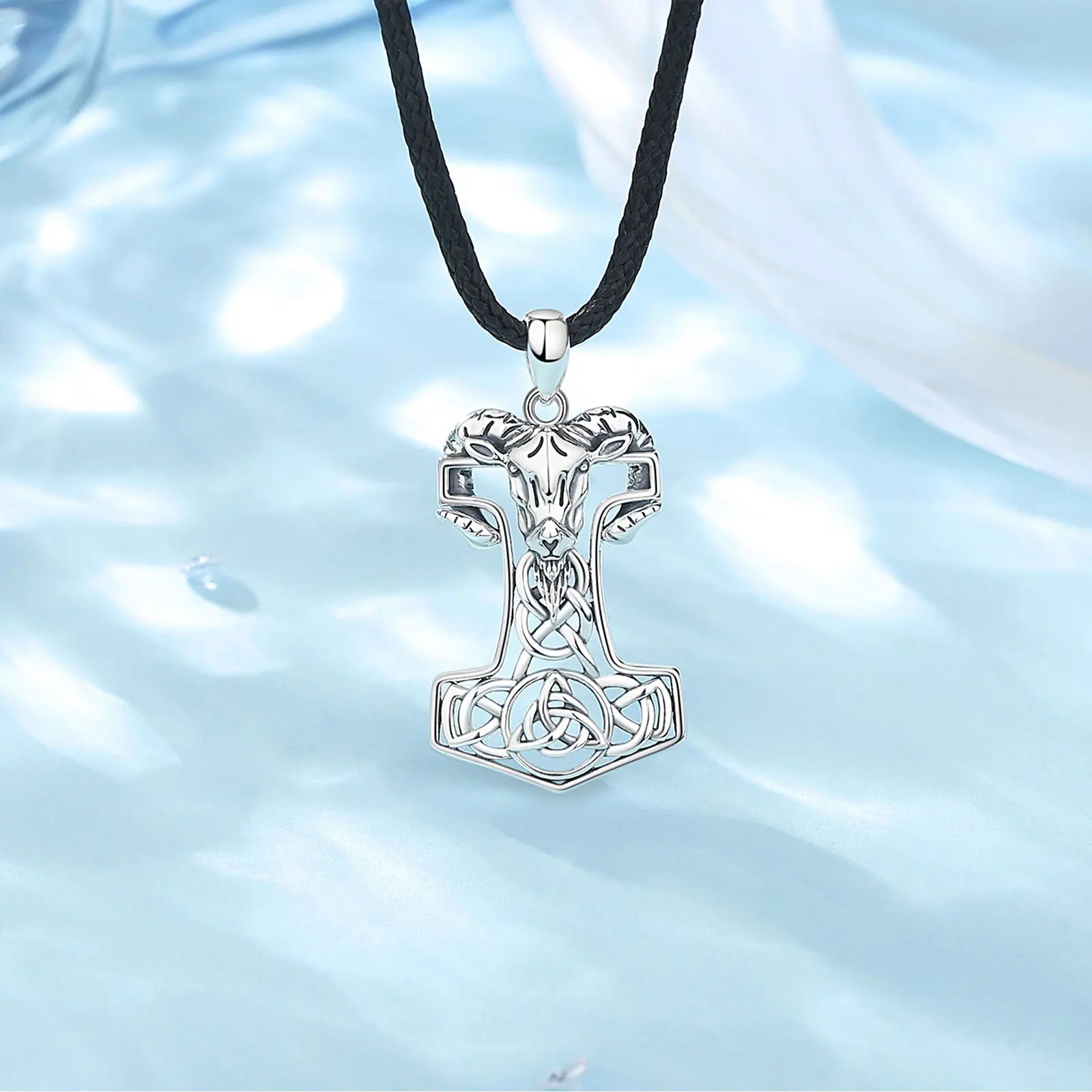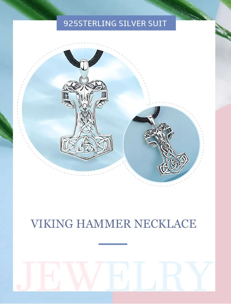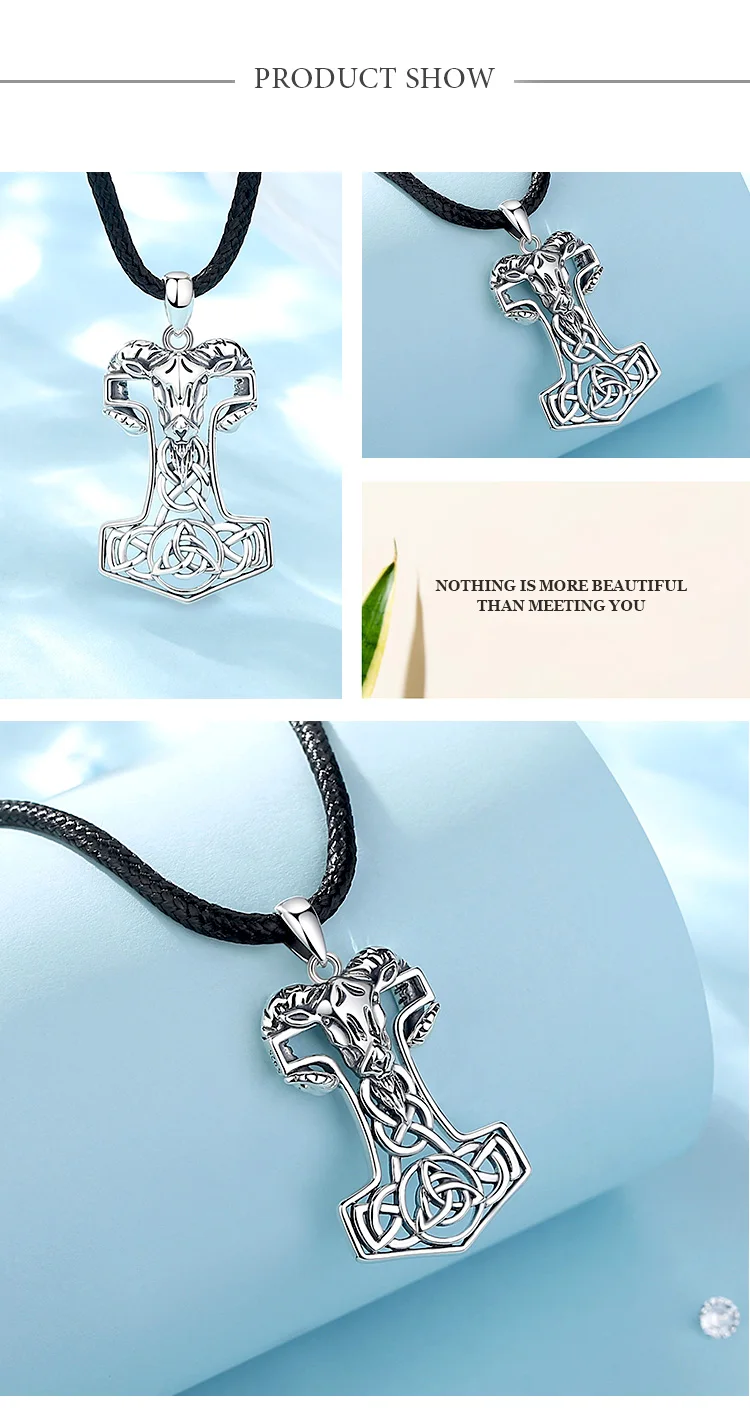 Eudora 925 Sterling Silver Norse Viking Thor's Hammer Mjolnir Rune Necklace Goat Celtic Knot Amulet Pendant Personality Jewelry