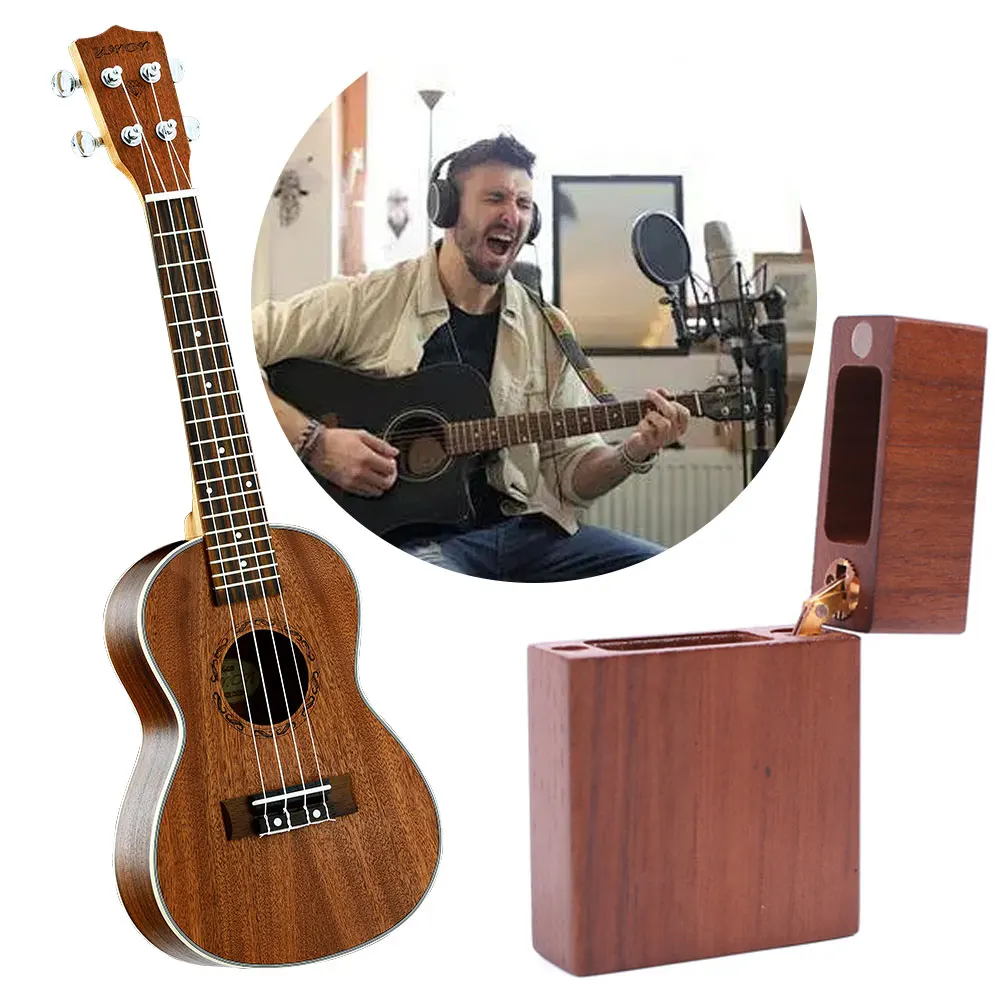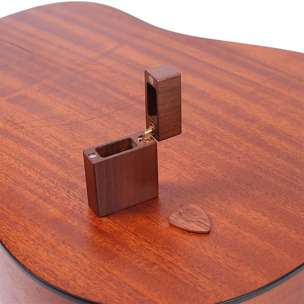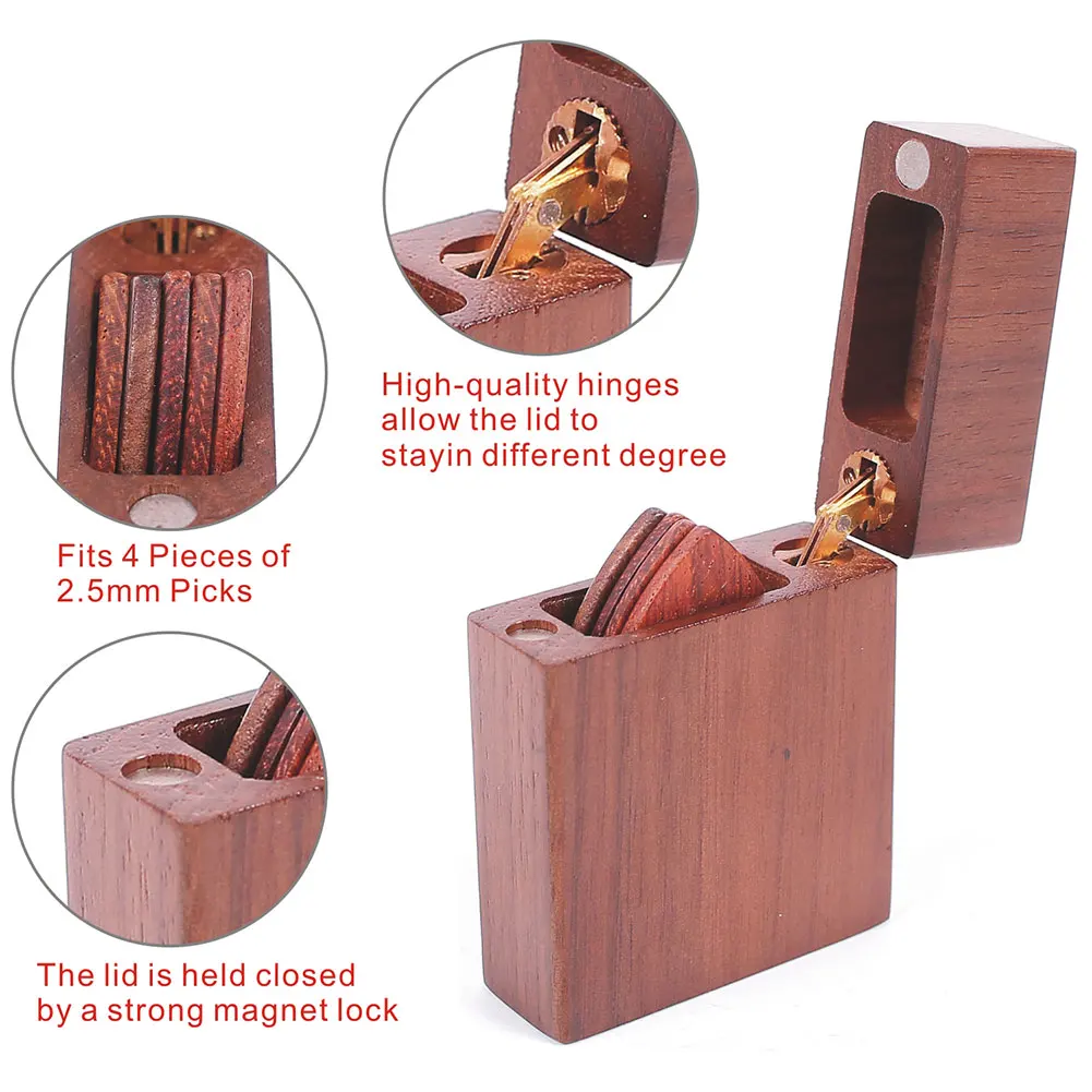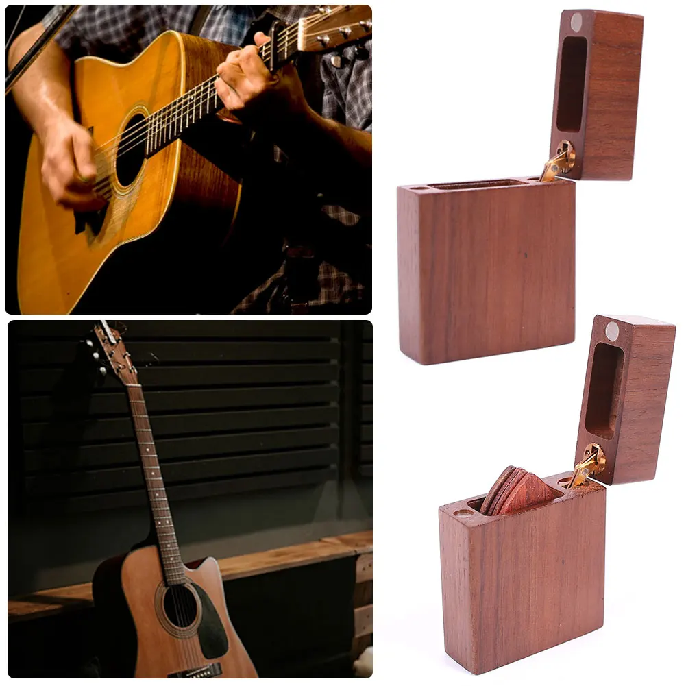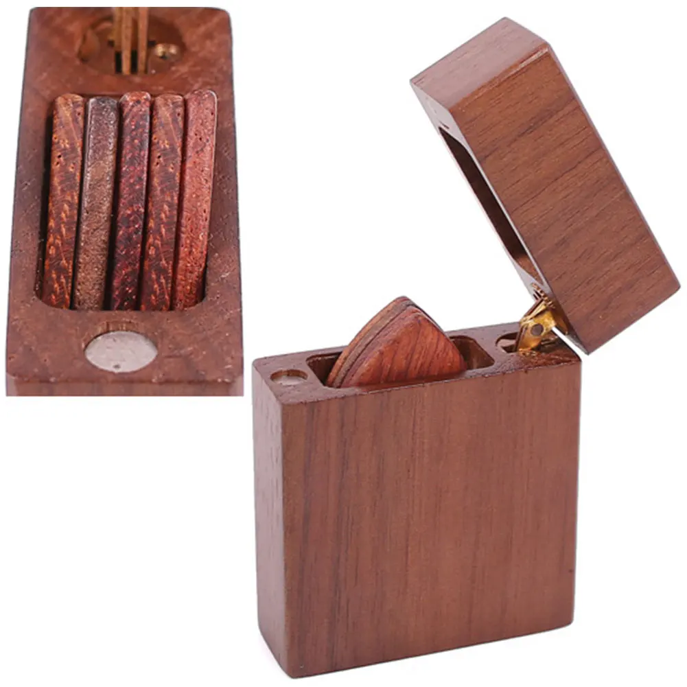 Guitar Picks Storage Box Compact Guitar Picks Case Walnut Guitar Wooden Pick Box Holder for Stringed Instrument