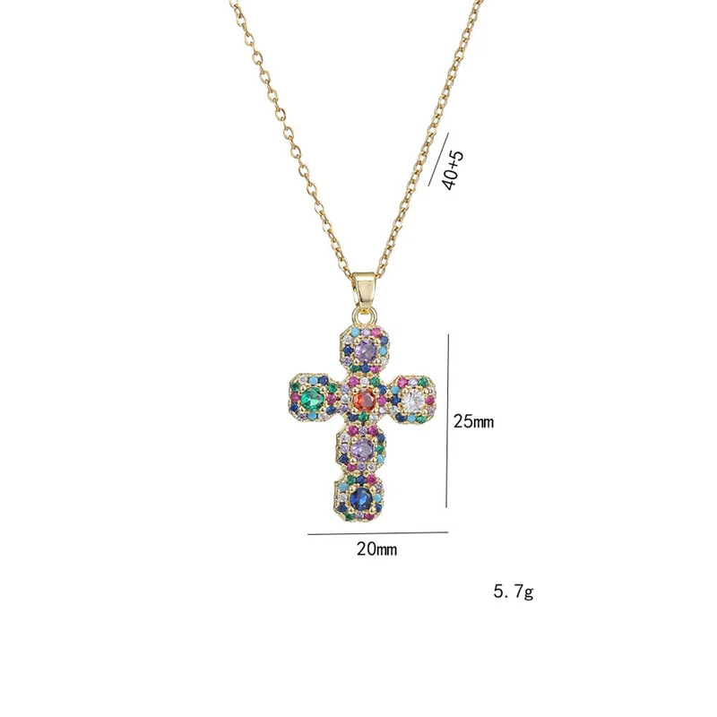 Multicolor Zircon Big Cross Pendant Female Luxury Clavicle Necklaces For Women Stainless Steel Chains Wedding Party Neck Jewelry