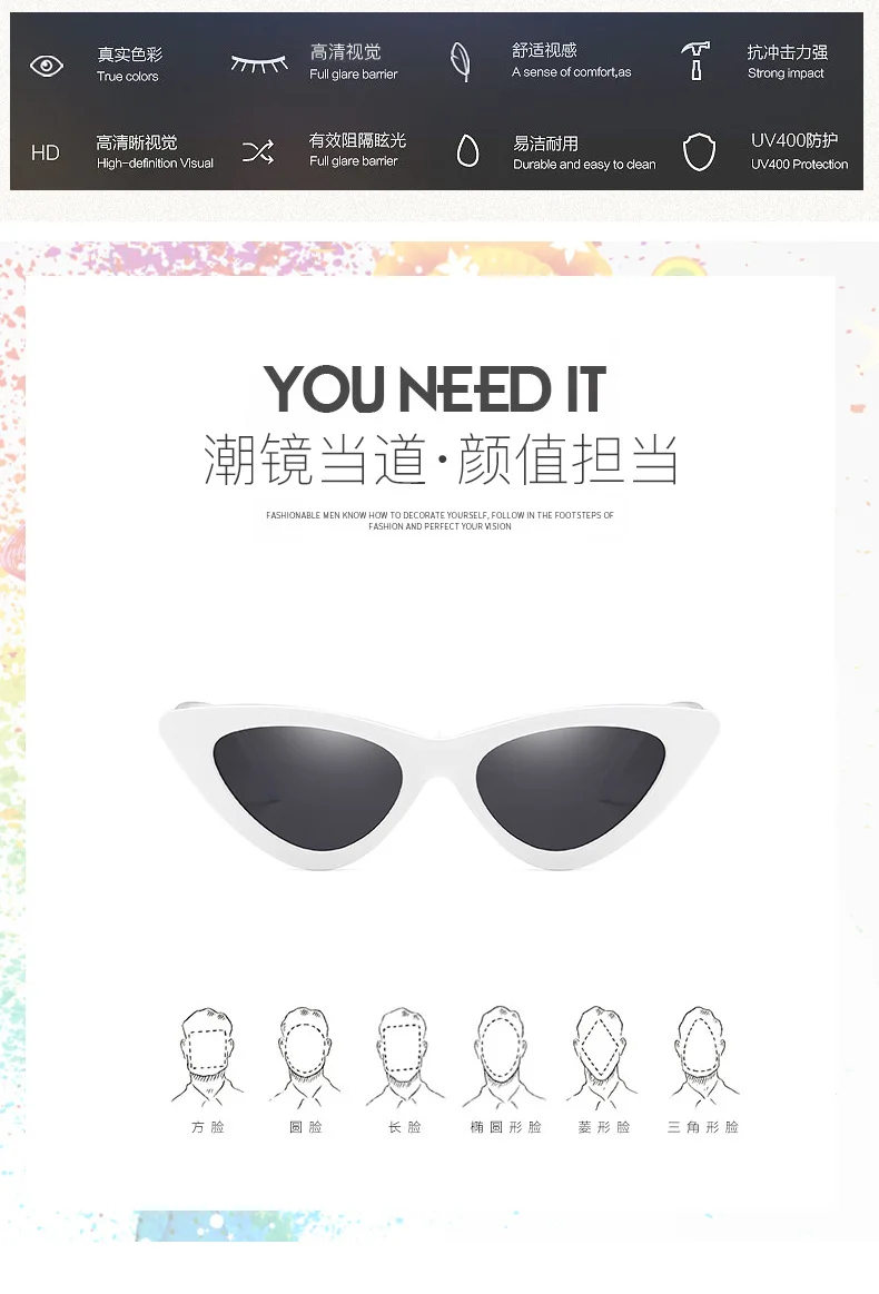 New fashion white small frame sunglasses Personlity designer Cute women trend sunglasses Cat Eye Shades For Women Sexy Oculos