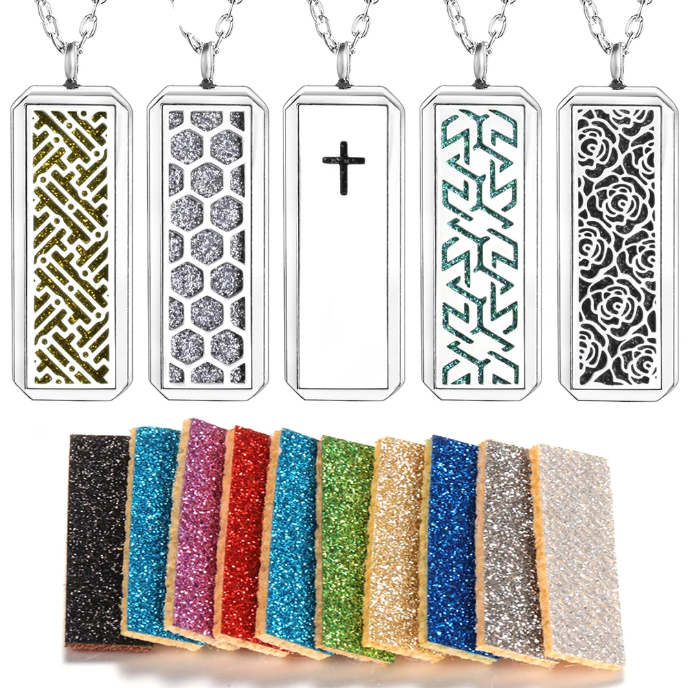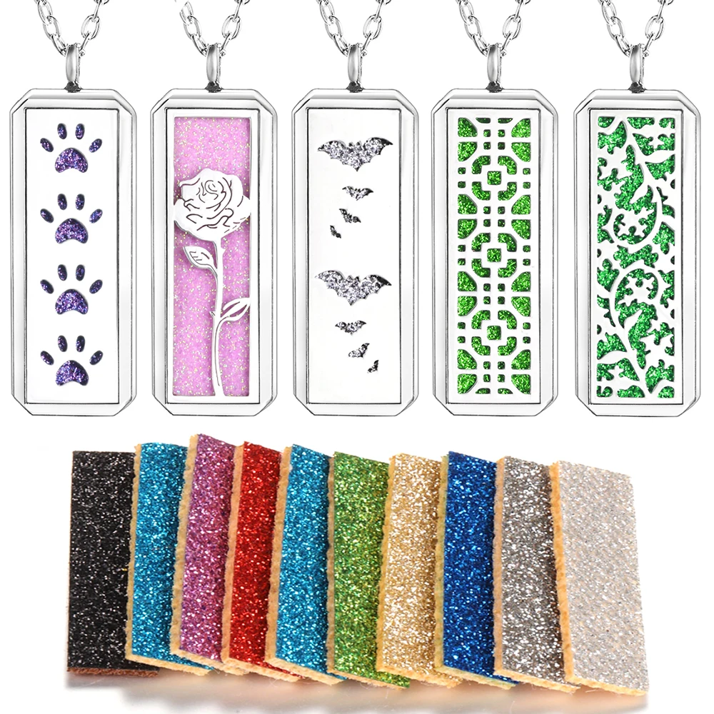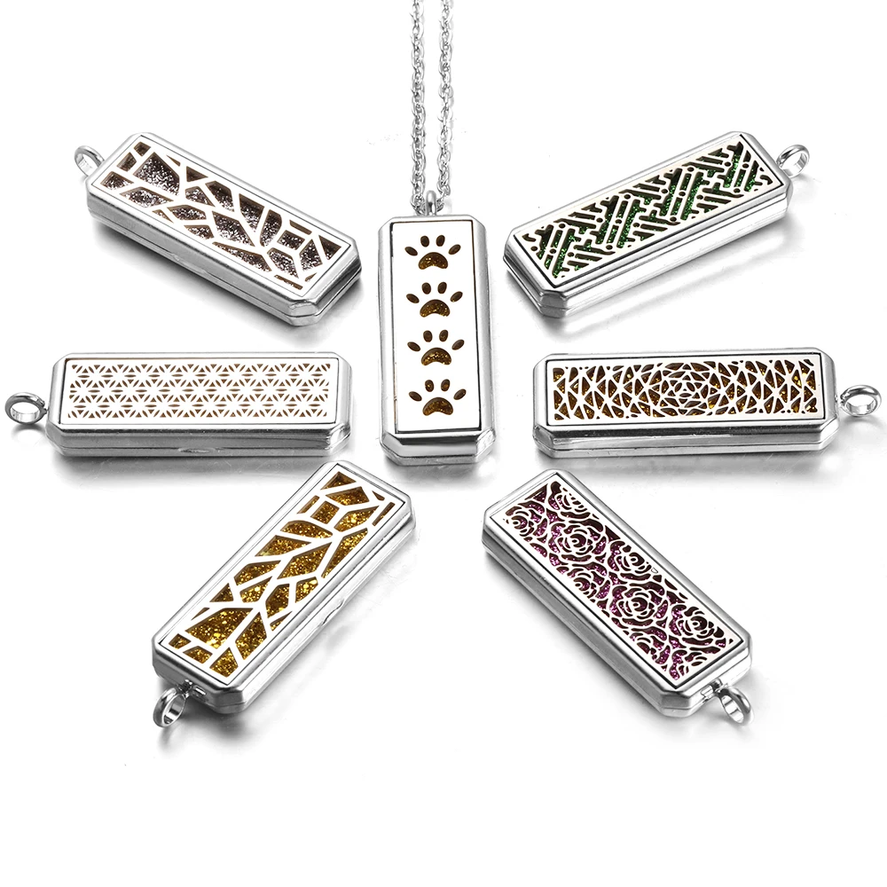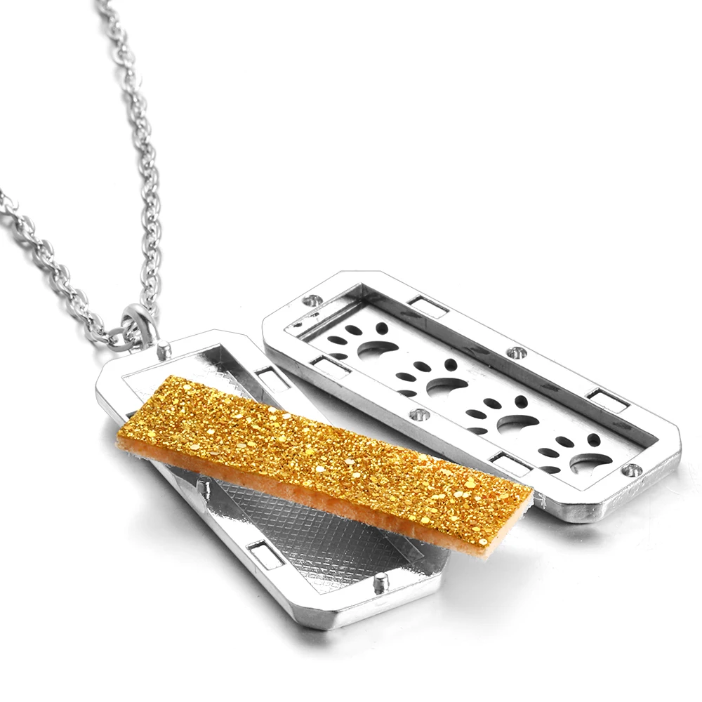 Rectangle Pendant Stainless Steel Magnetic Perfume Necklace Aromatherapy Essential Oil Diffuser Locket Fashion Necklace Jewelry