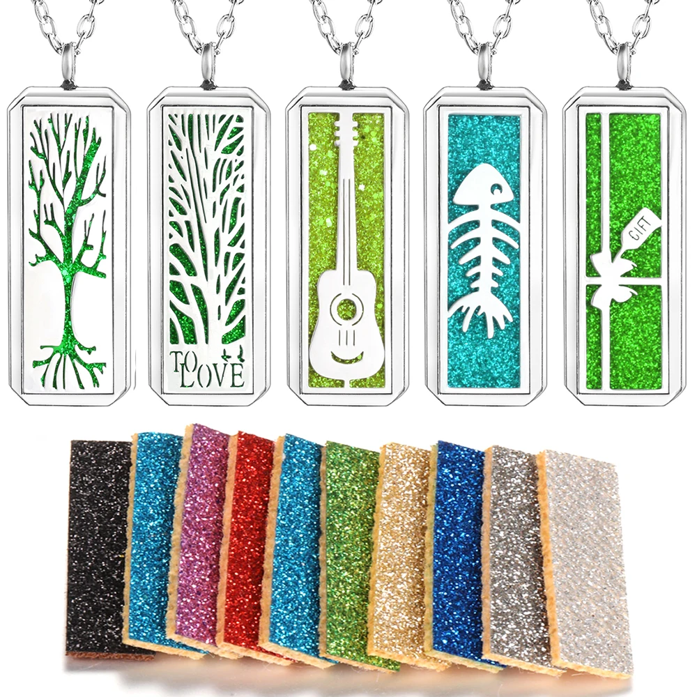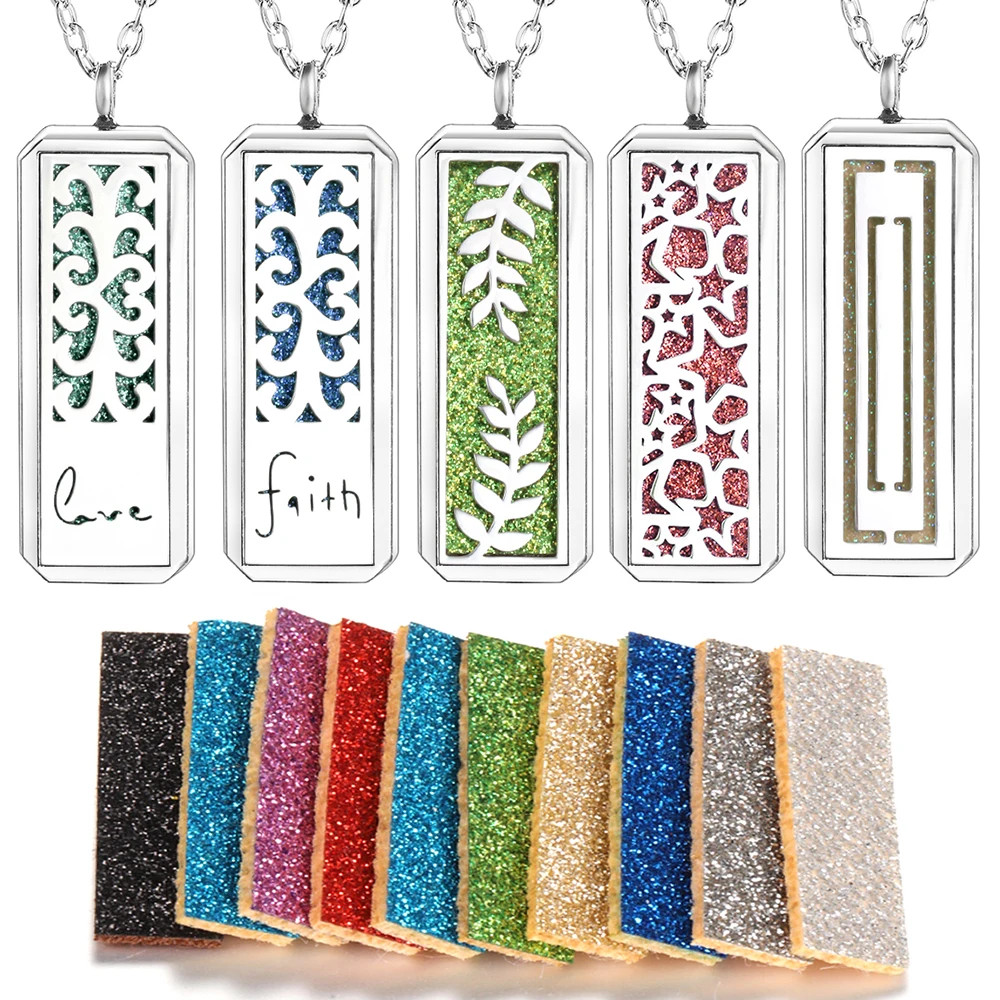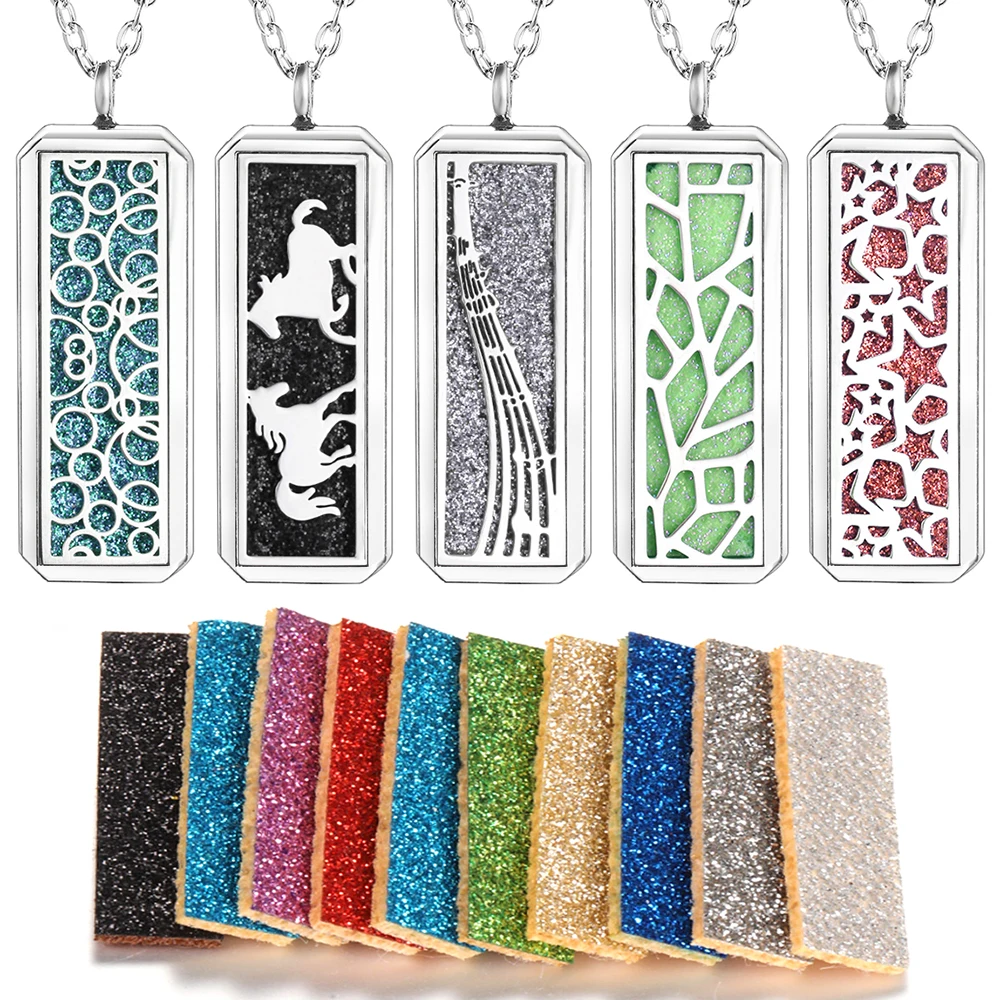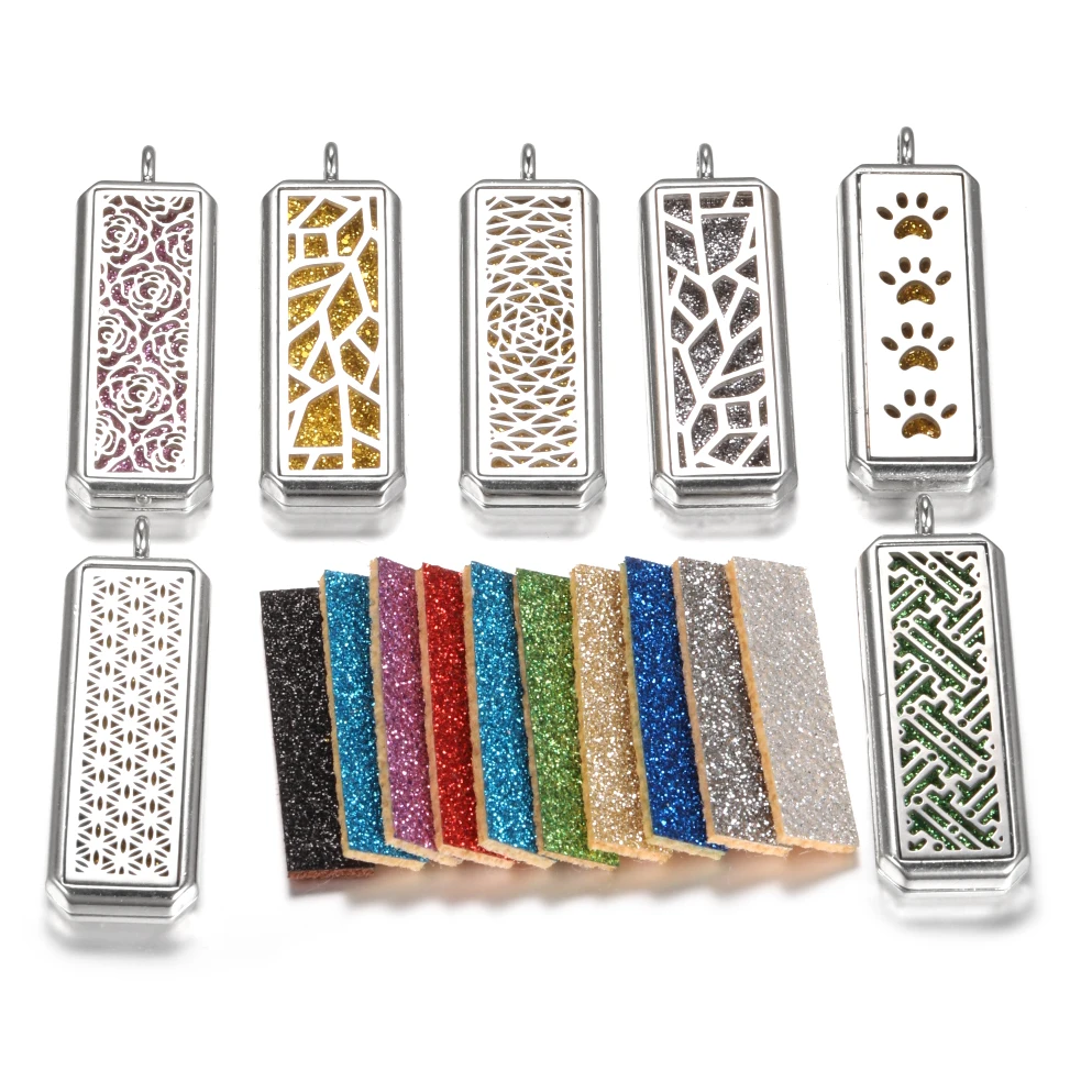 Rectangle Pendant Stainless Steel Magnetic Perfume Necklace Aromatherapy Essential Oil Diffuser Locket Fashion Necklace Jewelry