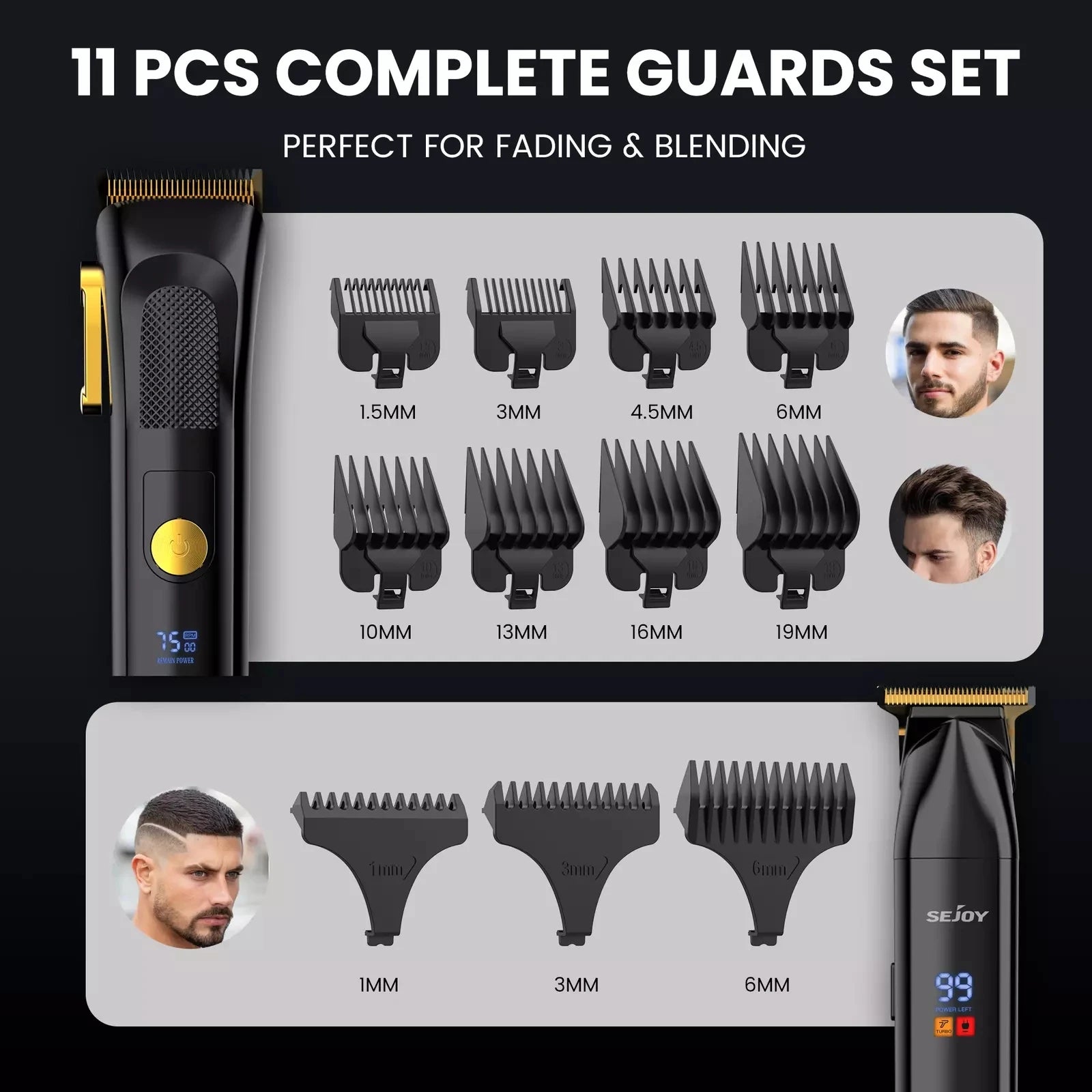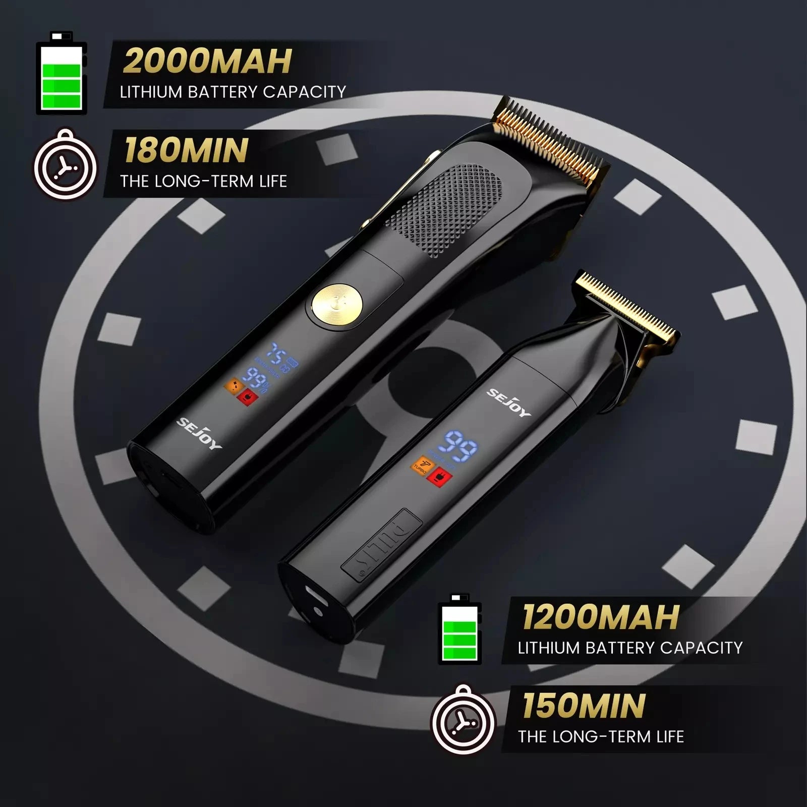 SEJOY 2 Pcs/set Hair Clippers Men Trimmer Kit for Barber Mens Beard Haircut Set Professional Hair Cutting Barber Machines