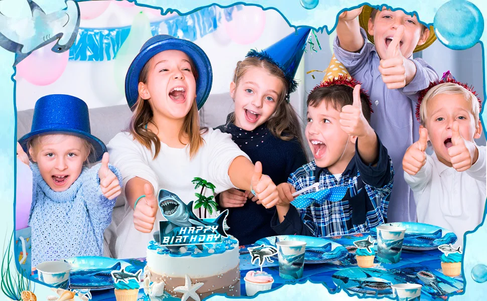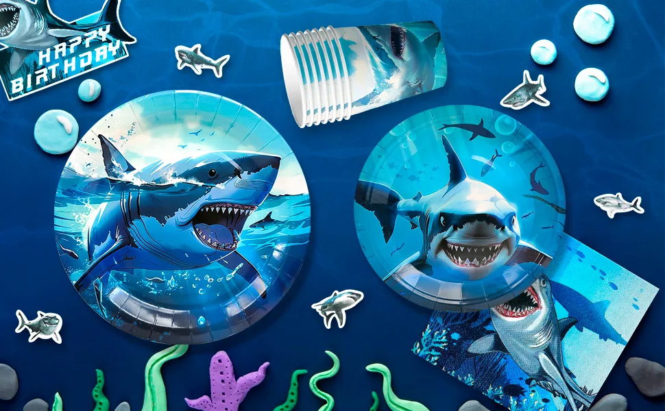 The shark themed party supplies are designed with a brave shark pattern, satisfying children's desire for power. It is very suitable for decorating kid's shark party and can create unforgettable memories for children.