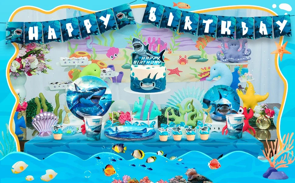 Are you still worried about how to hold an interesting shark themed birthday party? You can choose our shark birthday party supplies, which contain a lot of shark pattern elements to better decorate your shark birthday party.