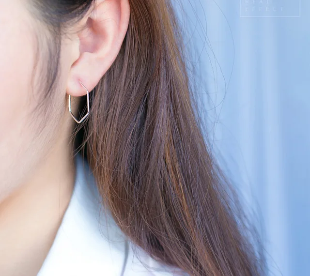 Trustdavis Newest 925 Sterling Silver Women's Jewelry Fashion Cute Hexagon Hoop Earrings For Fine Silver 925 Earring Gift DS133