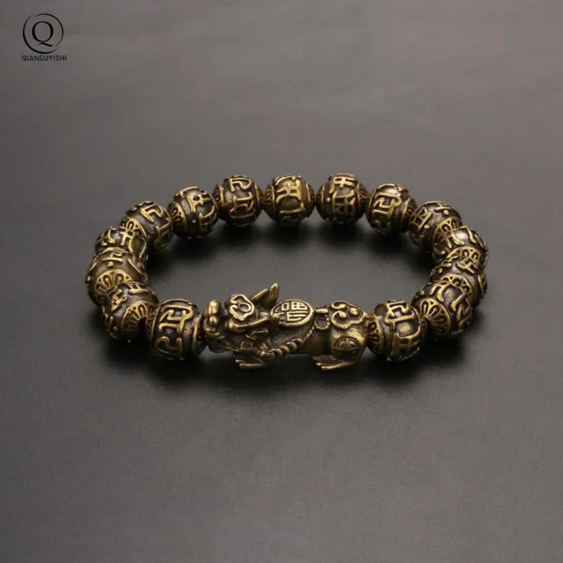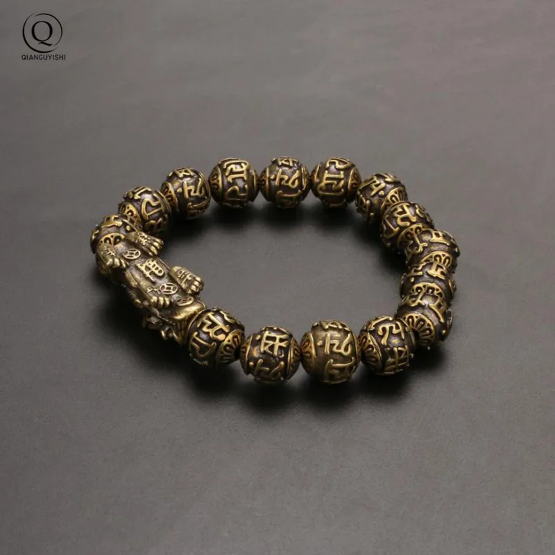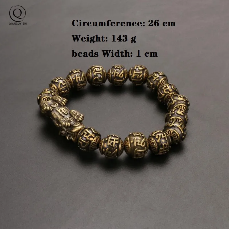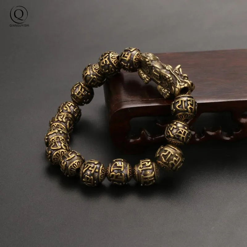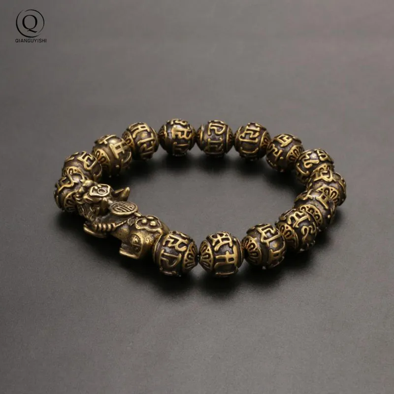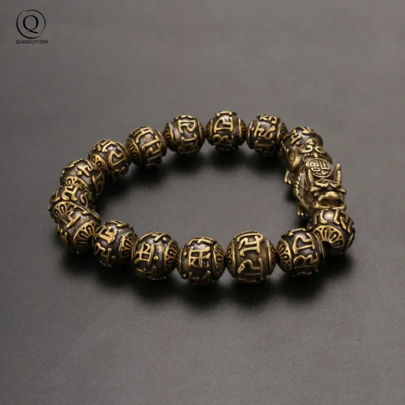 Vintage Copper Six Words Mysterious Animal Beads Chains Bracelets Brass Rosary Bangles Fashion Men Luckly Money Bracelet Jewelry