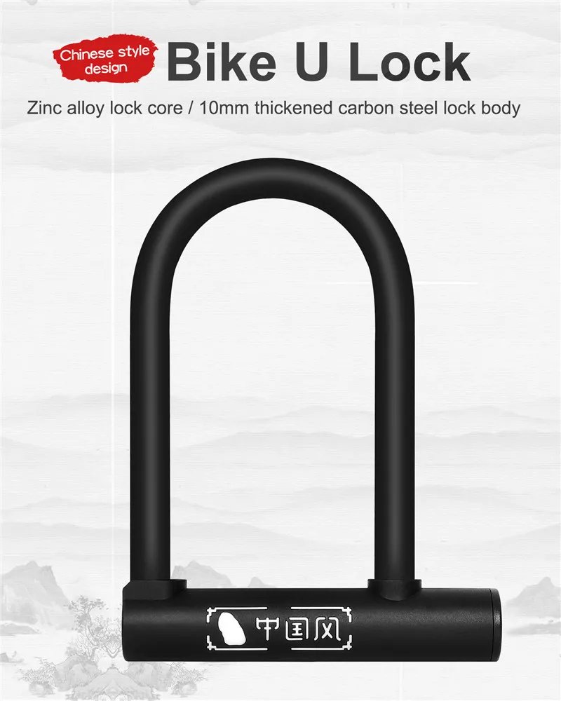WEST BIKING Bicycle U Lock Portable Zinc Alloy MTB Road Bike Padlock Anti-theft Safety Lock Motorcycle E-Bike Cycling Accessory